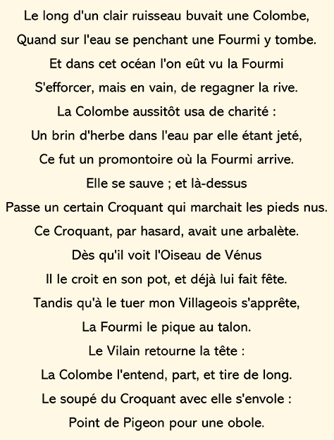 «La Colombe et la Fourmi» de Jean de La Fontaine